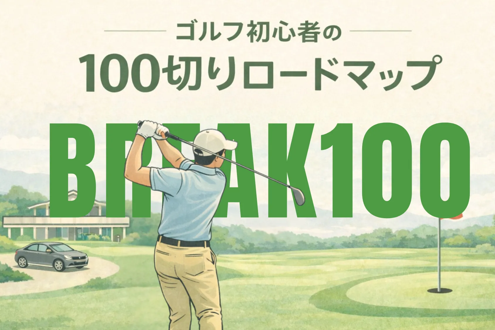 これを読めば、今日から「迷子にならない」ロードマップで100切りへ一直線。 まずは必要な道具と練習のやり方を押さえ、初心者がつまずきやすい「ルール」「振る舞い」「打ち方の引き出し」を最短で身につけます。本記事はシリーズの総まとめ。各ステップの詳細は深掘り記事へリンクしているので、読みながら準備・練習・初ラウンドまで一気通貫で進めましょう。