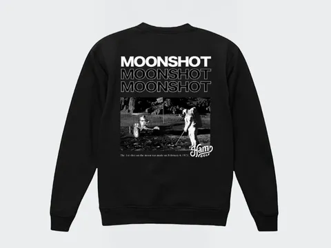 - 「MOON SHOT」は1971年2月6日、宇宙飛行士アラン・シェパードが月面でゴルフボールを打った歴史的瞬間をモチーフ。バックにはその象徴的シーンが描かれ、着る人の遊び心・好奇心・挑戦心をさりげなく表現します。